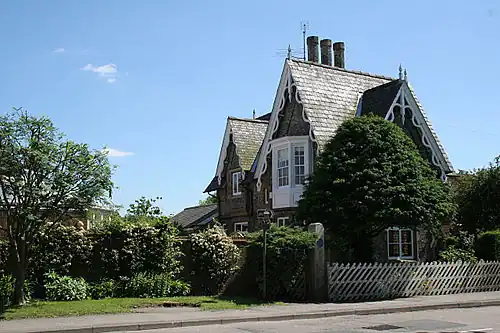 In 1871 the line was extended to Mansfield by the contractors Eckersley and Baylis (using cast iron bridges built by Andrew Handyside and Company of Derby).[4][5] The Midland Railway took the opportunity to rebuild the station building and stationmaster's house in stone and the platform shelters, and dismantle the original wooden station building, which was re-erected at Beeston railway station.[2]
