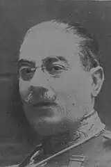 The key man in republican structures responsible for security issues was José Alonso Mallol, a 42-year-old lawyer and former member of PRRS who in the early 1930s briefly served as civil governor.[81] Salvador nominated him head of Dirección General de Seguridad,[82] the public order branch of the Interior, and later Moles confirmed him on this position. Historiographic opinions on Mallol differ; to some he "had worked tirelessly to combat Falangist terrorism and to monitor the activities of hostile officers",[83] to some he also lacked competence in security matters and was "no demasiado eficiente",[84] especially that he failed to find that some of his subordinates, like a high DGS functionary Santiago Martín Báguenas, were members of the conspiracy.[85] Guardia Civil, the key policing formation of the country, was led by brigade general Sebastián Pozas Perea, while Guardia de Asalto, formatted as sort of republican guard, was headed by teniente coronel Pedro Sanchez Plaza; both were fervent republicans. The Minister of War was initially division general Carlos Masquelet, of moderate left-republican sympathies; Casares had little faith in him and in May he took over the ministry himself. Throughout all the period between February elections and the July coup the army chief of staff was division general José Sánchez-Ocaña, a cautious military who did not demonstrate any political preferences.