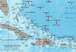| Mercury-Atlas 4 | NASA | September 13, 1961 | 257.5 km (160.0 mi) E of Bermuda | USS Decatur | 64.4 km (40.0 mi)[71] | |