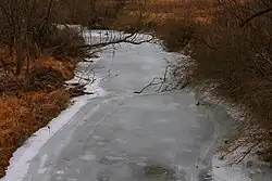 Spruce Run at Pennsylvania Route 254, looking upstream | |