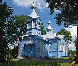 The current functioning church was built between 1899 and 1900.[1] The church operated until 1915, when, in August of that year, the Orthodox inhabitants of the village fled during mass deportation. The church bells were taken to Minsk, and the church's furnishings were buried in the local Orthodox cemetery near the tomb of Father Alexander Bursa. The building was reopened for worship after 1918, following the return of the Orthodox community.[3]