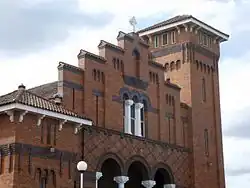 The Church of St Ignatius Loyola is a brick Romanesque building cut into a steeply sloping site on Toowong ridge. It commands a fine prospect across the city and its prominent position and square bell tower make it a landmark. It is a two-storey building with a hall on the lower level and the church proper on the upper level.[1]