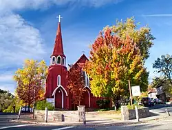 St. James' Episcopal Church, also known as The Red Church, is an historic Episcopal church building, formerly Anglican, located at 42 Snell Street, in Sonora, California. Built in 1859 in the Carpenter Gothic style, its board and batten exterior walls are of California redwood and are painted red. It was consecrated in 1870 by the Rt. Rev. William Ingraham Kip, first bishop of the Episcopal Diocese of California. Reportedly the seventh Episcopal parish as well as the oldest Episcopal church building in California, it has been designated California Historical Landmark No. 139.[1][2]