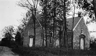 St. John's Church is a historic Episcopal church located near Sweet Hall, King William County, Virginia, United States. It was constructed in 1734 and is a one-story, T-shaped brick building. It measures 50 feet, 3 inches, by 20 feet, 2 inches, with a 24 feet wide, 28 feet, 9 inch, wing. St. John's is the only surviving colonial church in King William County to remain in the Episcopal charge. This church is also important in that it is associated with Carter Braxton, Signer of the Declaration of Independence, who regularly attended worship there.[3]