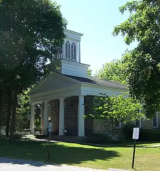 St. John's Episcopal Church is a historic Episcopal church located at Honeoye Falls in Monroe County, New York. It is a one-story, stone structure built in 1841–1842, with a bell tower added in 1855. The building features Greek Revival massing and a Doric order portico with Gothic Revival arched windows and doorways.[2]