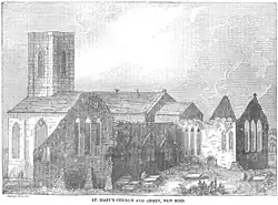 The bells were stolen in 1654 by a Lieut.-Col. Beale, during the Irish Confederate Wars.[7] Divine Service was performed at St. Mary's until 1811 or 1812, when the west aisle was demolished to make room for the modern church.