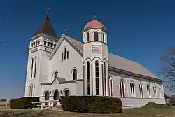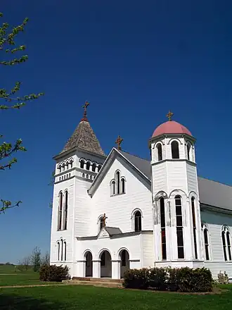 St. Mary's Church is a historic turn-of-the-20th century Catholic church located in the unincorporated community of Adair, 12 miles northeast of Kirksville, Adair County, Missouri, on Missouri Route 11.[2] An example of Romanesque Revival architecture, it is one of the few wood-frame structures in that style still remaining in the United States.[3] St. Mary's was constructed in 1904, and was added to the National Register of Historic Places in 1974. It is now owned and managed by Friends of St. Mary's, a non-profit preservation organization.[4]
