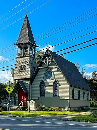 St. Thomas Episcopal Church is a historic Episcopal church building located at 2720 Slaterville Road, east of the post office in Slaterville Springs in the town of Caroline, Tompkins County, New York. It was built in 1893 and is an example of the Carpenter Gothic style of architecture, sometimes called the High Victorian Gothic. It features include, a steeply sloped roof, lancet windows, lancet covered entry through a side steepled belfry, all of which are typical of the Carpenter Gothic style.[2]