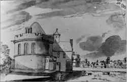 The architect was William Dodson and it was said to have been constructed in an unusual eliptical (round) style and appears in a 1698 illustration by Francis Place.[2][3]