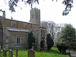 The church is made up of a chancel, south chapel, north porch with parvis above, nave, and two aisles.[3] The parvis was built to be a chamber for the priest. The Gunpowder Plot is said ("an implausible rumour"[4]) to have been planned here[1][5] but the manor house at Ashby St Ledgers, Northamptonshire also claims to be the site.[6] Stoke Dry's manor was held by the Digby family in the early 17th century. Sir Everard Digby was one of the Gunpowder plotters and was executed for his role.[3][6][5]