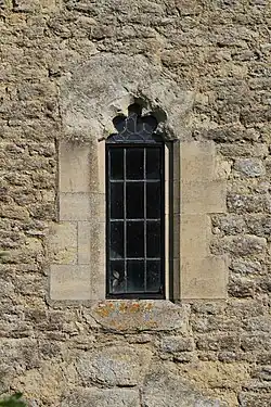 The chapel has the nave and chancel in one, the north doorway, with a chamfered arch, is original. Alterations were made to the west doorway and the roof in the 15th century, in a Perpendicular Gothic style, with a crenellated wall plate and blank shields. The unusual tracery in the large two-light windows, originally dating from the 14th century, may have been added in the 17th century. One of the west windows is 17th century and repairs to the hospital are recorded in 1600, 1635 and 1649, the last for damage to the main hospital range, north of the chapel, during the English Civil War. There are remains of two painted crosses on the west wall. The simple screen with openings divided by two columns and two pendants is dated 1651 and was given by Oriel College and the plain wooden fittings are designed by Ninian Comper.[3] It is a Grade I listed building.[4]