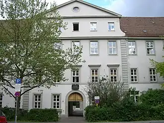 It was founded in the Am Gries suburb of the city in 1243 before moving into the city centre eight years later. It was dissolved in 1802, and the nuns vacated the monastery in 1807. In 1834, some of the convent buildings were re-used to house the Königliche Polytechnische Schule and a trade school. In 1835, the former convent church was converted into the Staatsgalerie Altdeutscher Meister, a branch of the Bavarian State Painting Collections, which is still there today.[1] In 1877, the building was taken over by a district primary school, now known as the Holbein-Gymnasium.