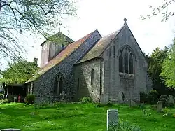 The oldest parts of the church date from the 11th century although most of the church is later, from the 12th to 14th centuries, with substantial additions in the mid-19th century. The church had no dedication until, in April 2007, the congregation agreed to dedicate the church to St Catherine of Siena, whose name is engraved on one of the church bells.[3] The church is a Grade I Listed building.[4] Inside the church, the main features of interest are the 11th-century chancel arch, the remnants of a 13th-century wall painting and the 12th-century font.
