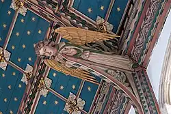 Following bomb damage to the lead roof during the Second World War, it was entirely replaced with copper in 1948. This covering degraded over time, partly due to the church's seaside environment, and it was decided in 2013 to reroof the entire church, including replacing the flèche, in lead.[7]