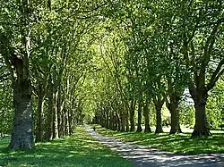 There is a banjo shaped lake fed by a natural stream. It has an island, which serves as the nesting place of swans, ducks and moorhens. Until the mid-1980s, this lake was used for boating, with two separate areas: one for rowing boats and canoes, and the other for small paddle boats, both being available for hire. The lake has since been drained and unsilted, and the boats removed. Fishing is no longer permitted. This lake is still used by model boat enthusiasts.[4]