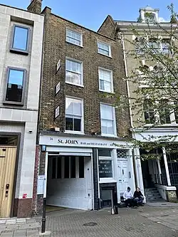 The original restaurant in Smithfield was joined by a smaller, less formal sister restaurant and bakery in the Spitalfields area of London called St. John Bread and Wine in 2003,[8] and a hotel near Leicester Square in 2011.[9] As of 2013, the hotel is no longer affiliated with St. John restaurants.[9]