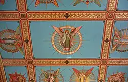 A large and elegant example of a Commissioners' church, its original floor plan remains intact as well as notable galleries and décor,[32] including a stunning painted ceiling[33] executed in the early 20th century by the ecclesiastical architect Joseph Arthur Reeve.[34][35]