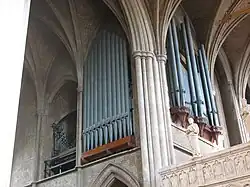 Since the incumbency of Thomas Helmore, the Church of St John the Evangelist has maintained a strong tradition of music in Christian worship. The organ was originally built by Thomas Christopher Lewis in 1882 during the construction of the church, when only the chancel had been completed. The instrument was of an unusual design; while the organ itself was situated in the north transept, the console was placed on the other side of the church in the south choir aisle. This led to technical problems and the organ underwent several rebuilds in 1912, 1947 (following wartime bomb damage) and most recently in a restoration project undertaken in 1997-98 by Harrison & Harrison.[7][8]