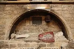 St Mary's Church is the largest and "stateliest" parish church in Leicestershire,[4] with visible remains dating mainly from the 13th-15th centuries. The stonework in the lowest section of the tower, which has Norman windows, dates from 1170, although there were certainly one or more Anglo-Saxon churches on this site before the Norman one. It is built on a plan more usual for cathedrals and the 100-foot (30 m) tower dominates the town, and is a rare example of a parish church with aisled transepts (one of only five in the country) a feature usually found only in a cathedral. It contains a number of notable monuments including the tomb of Roger de Mowbray, 1st Baron Mowbray and others dating from the 14th to the 18th century; also a memorial tablet to equine artist John Ferneley (1782 to 1860).[5]