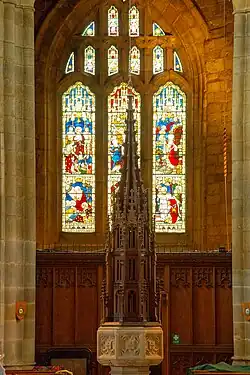 It was restored in 1877 by George Edmund Street.[3] During the restoration of 1877 it was reported that the East window of the south aisle contained the royal arms of England quartered with France, with the motto “Dieu et mon droit.” There were also the arms of the Ascough family, those of Mowbray, of Sir James Strangways, and Elizabeth his wife, and members of their family.