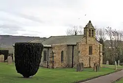 The church is built of stone with slate roofs, and consists of a nave, a north aisle, a south porch, and a chancel with a north aisle. At the west end is a double bellcote with rusticated stonework, four-centred arched bell openings, a moulded cornice, and a pyramidal gable surmounted and flanked by squat obelisks. The porch has a coped gable with three ball finials, and contains a four-centred arched opening with a chamfered surround. Inside, there is an effigy of a knight dating from the 1320s and an 18th-century monument of carved marble.[3][4]