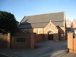 Construction began in 1866 and the church officially opened in 1868. The church was mostly paid for by Thomas Young of Kingerby Hall at a cost of £1250.[3] The church was designed by the architect Matthew Ellison Hadfield, a proponent of the Gothic Revival movement led by A.W.N Pugin. The church is built of red brick with a Welsh slate roof. Prior to WW1, the church had a very ornate interior, which was stripped out after the war, however in 2008, efforts were taken to reverse this, with the Sanctuary being decorated in a style more reminiscent of Pugin.[4][5][6]