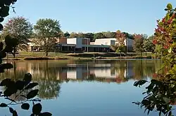 The former Stafford High School building from across the pond.