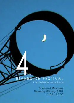 The 2nd Riverside Festival brought in a main festival sponsor, Crestwood, along with Ideal Shopfitters and Newage AVK. The RAMA team consisted of Paula Birbeck, Richard Clark, Darren Cummings, Mike Harwood, Blair Heyden, Sarah Minty, Simon Robinson, Martin Smith and Kev Thurlby. The main development for this year was providing a dedicated dance tent on the north side of the site, towards Bath Row. The festival cost £17,000 to stage.[14] The attendance was estimated at around 8,000, with 5,000 on site at any one time.[15] Again a free programme, which can be viewed here:,[16] was produced in return for donations.