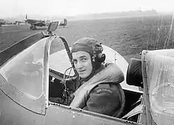 ![]() Browne, sitting in his Supermarine Spitfire fighter at Kenley | |