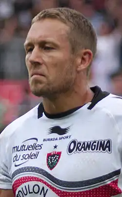 The practice of using stars to signify major titles has spread to other football codes, and to unrelated sports. For example, in 2009, Meath senior Gaelic football team began wearing seven stars on their jerseys, signifying their seven All-Ireland Senior Football Championships.[27] In rugby union, Toulouse added a star above its badge in 2001 to signify its Heineken Cup win in 1996, added a second star immediately after winning the same competition in 2003 and a four more after winning in 2005, 2010, 2021 and 2024. In 2008 English rugby union side Bath Rugby also added a star on their shirt while Leinster Rugby added 2 stars after their second Heineken Cup win in 2011 and two more after winning in 2012 and 2019. English rugby union side Sale Sharks wear a gold star in tribute to their sole Premiership title.[28] In basketball, the men's team of Indiana University Bloomington added five stars to its shorts, representing its five NCAA championships, for the 2015 NCAA tournament, and made the stars at that location a permanent fixture for the 2015–16 season.[29] The Los Angeles Lakers of the National Basketball Association have 17 stars around the logo at center court for their 17 league titles, but do not wear stars on their uniforms. In intercontinental cricket competitions, the India national cricket team at one point featured three stars above their crest to represent its two ODI Cricket World Cup championships from 1983 and 2011 and one ICC Men's T20 World Cup championship from 2007.[30] However, for the 2023 Cricket World Cup, the team opted to use a two star jersey because the third star represented a title from a T20 competition.[31]