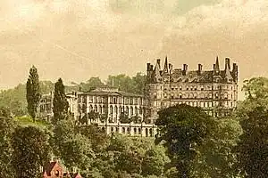 Several concerts and fundraising events were held at the hotel and its Grand Concert Hall in this period. In 1879, a recitation was given by the actor Samuel Brandram and the singer Isabella Glyn.[31] Several events were held to raise funds for the local hospital, the Richmond Royal Hospital, including a concert in 1879 attended by the Duchess of Teck and the Duchess of Connaught.[32] More funds were raised in 1893 at a public dinner for "Princess May's Ward for Children", presided over by the Duke of Cambridge.,[33][34] with another banquet in November the same year.[35] In 1895, a bazaar was held at the hotel and in its grounds in aid of the Missions to Seamen, opened by the Duchess of Teck.[36] A similar event in 1897, held over two days, supported the Church of England's Waifs and Strays Society, and was opened on the first day by Princess Christian of Schleswig-Holstein, and on the second day by Princess Edward of Saxe-Weimar.[37][38] The site was also the location for local school prize ceremonies, as in 1895 when the Bishop of Salisbury presided at the prize-giving ceremony for Richmond High School.[39]