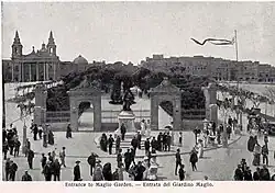 The Vilhena statue at the entrance to the Mall gardens in Floriana, where it stood from 1891 to 1989 (except for a brief period during World War II), in a c. 1920 photograph