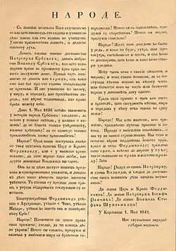 In early Middle Ages, Serbs settled in the southern parts of the Kingdom of Hungary (Syrmia, Bačka, Banat, Baranya), with their population increasing with the Great Migrations of the Serbs in the 17th and 18th centuries. Serbs called for various autonomous territorial and cultural rights on multiple occasions, including at the 1790 Council of Timisoara, 1848 May Assembly, and 1861 Annunciation Council.[1] Austrian Empire and Austria-Hungary nevertheless limited Serb autonomy to Eastern Orthodox religious and educational self-government, particularly after the abolition of the Serbian Vojvodina in 1849 and Voivodeship of Serbia and Banat of Temeschwar in 1860.[1] Calls for Serb territorial autonomy were silenced until the beginning of the World War I and the end of the Austria-Hungary.[1] The experience and subsequent abolition of Serbian Vojvodina and Voivodeship of Serbia and Banat of Temeschwar nevertheless inspired cultural and political leaders among Prečani Serbs for advocating for unification or closer links with the Principality of Serbia and Kingdom of Serbia.[2]
