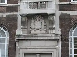 Keystone Head over the central doorway, by William Bloye, showing the Coat of arms of Birmingham