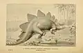 1901 life restoration of Stegosaurus ungulatus by Charles R. Knight with paired dorsal plates and eight tail spikes