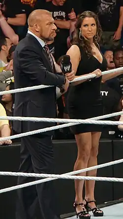 On July 22, 2022, Vince McMahon retired from WWE and named his daughter the company's new chairwoman and Co-CEO (alongside Nick Khan).[28] Triple H then replaced Vince McMahon as Head of WWE creative.[29] On January 10, 2023, McMahon Levesque resigned as Co-CEO of WWE and from the company, following her father Vince McMahon's return to the company as executive chairman.[30][31]