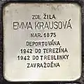 EMMA KRAUSOVÁ BORN 1875 DEPORTED 1942 TO THERESIENSTADT 1942 TO TREBLINKA MURDERED |
