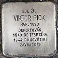VIKTOR PICK BORN 1893 DEPORTED 1943 TO THERESIENSTADT 1944 TO AUSCHWITZ MURDERED |