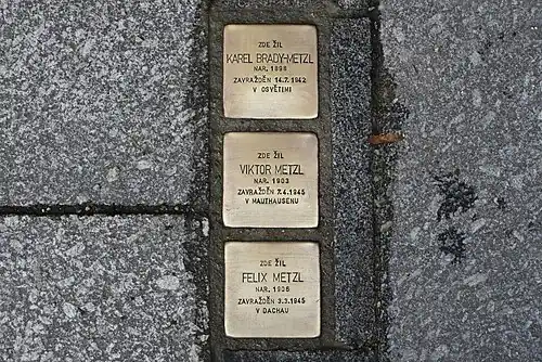 49°00′15″N 14°46′17″E / 49.00425680000001°N 14.77129709999997°E / 49.00425680000001; 14.77129709999997 (Stolpersteine for Karl Brady-Metzl, Felix Metzl and Viktor Metzl)
