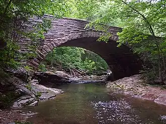 Stone Arch Bridge over McCormick's Creek is a historic arch bridge located at McCormick's Creek State Park in Washington Township, Owen County, Indiana. It was built by the Civilian Conservation Corps in 1934, and is solidly constructed of mortared roughcut limestone. The round arch has a 54-foot (16 m) span and reaches approximately 25 feet (7.6 m) high.[2]: 5