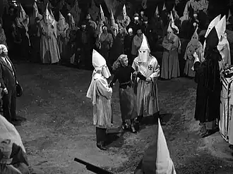 Despite its focus on the Ku Klux Klan, an organization that is historically racist, the film makes no direct references to the subject,[14] and only a small number of African Americans are depicted in the film, appearing during the expansive crowd sequences.[15] Moira Finnie, writing for Turner Classic Movies, notes that, in addition to omitting references to racism, the film also fails to highlight anti-Catholicism or anti-Semitism in its depiction of the Ku Klux Klan.[22]