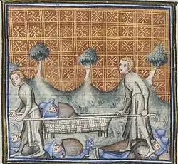 An early stretcher, likely made of wicker over a frame, appears in a manuscript from c. 1380.[3] Simple stretchers were common with militaries right through the middle of the 20th century.[4]