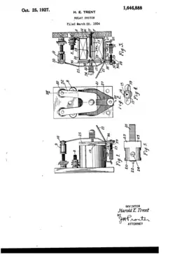 • 1924 - Struthers-Dunn applies for patent US1646888A for SPDT, self-adjusting relay - the first use of many standard features still used in the design of electro-mechanical relays today.[3]