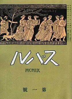 In 1909, after Myōjō ceased publication, Mori Ōgai[2] and a few other prominent Myōjō writers including Tekkan Yosano[2] and Akiko Yosano came together to publish a new magazine that would become Subaru.[4] Ishikawa Takuboku initially served as editor.[1] The magazine was noted for publishing works by Ishikawa, as well as Mokutaro Kinoshita, Kōtarō Takamura, Yoshii Isamu (1886 – 1960), and Hakushū Kitahara (the latter leaving Myōjō in January 1908 was one of the factors contributing to its going out of print[5]).[6] Anti-Naturalist and Romantic writings were most prominent, and writers known for having their works published in Subaru were known as Subaru-ists (スバル派, Subaru-ha).