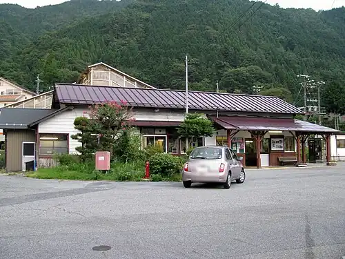 1. ^ a b c d Shinano Mainichi Shimbun (2011). Nagano Prefecture All Railway Stations, revised edition (長野県鉄道全駅 増補改訂版) (in Japanese). Shinano Mainichi Shinbun Publishing. p. 178. ISBN 9784784071647.