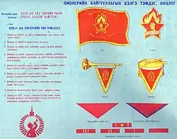 The Sükhbaatar Mongolian Pioneers Organization (Mongolian: Сүхбаатарын нэрэмжит Монголын пионерийн байгууллага, romanizedSükhbaataryn neremjit Mongolyn pionyeriin baiguullaga) was a pioneer movement in the Mongolian People's Republic. The organization was named after the Mongolian military leader and revolutionary hero Damdin Sükhbaatar.[1]