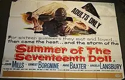 Summer of the Seventeenth Doll (U.S. title: Season of Passion) is a 1959 Australian-British film directed by Leslie Norman and starring Ernest Borgnine, Anne Baxter, John Mills and Angela Lansbury.[1] It was written by John Dighton based on the 1955 Ray Lawler play Summer of the Seventeenth Doll. It has been called "one of the most frustrating movies ever made in Australia" because "it had terrific source material, the backing of a Hollywood studio, a decent group of filmmakers" but the result was critically and commercially underwhelming.[2]