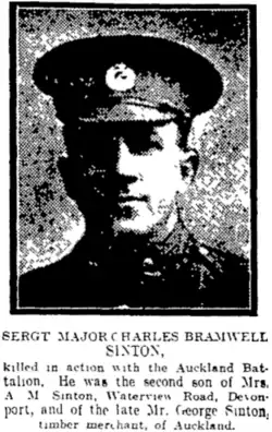 On August 28 both teams wore black arm bands after learning of the death of player Sergeant Major Charles Sinton who had been killed at the Dardanelles.[28] On September 11 the 4th grade side played against a N.Z. Jockeys team at Victoria Park as a curtain-raiser to the Roope Rooster final between North Shore Albions and Newton Rangers.[29] The Sunnyside team won 9-3 with “the most prominent players” for them being Sydney Wynyard (younger brother of former New Zealand internationals Richard Wynyard, and William Wynyard), N.M. Robertson, A.G. Martin, and V. White.[30]