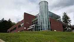 Sussex County Community College is located on a 167-acre (68 ha) hillside campus in Newton, New Jersey that features three ponds (including Horton Pond), and a stream that feeds into the Paulins Kill.[10][11][19][20] Located along Mill Street (also known as County Route 519) between Swartswood Road and Plotts Road, 88.63 acres of the campus are located within Newton, the remainder within neighboring Hampton Township.[21][22] Classes are held in five main academic buildings that feature approximately 60 classrooms, ten computer labs, ten science labs, an art studio, two art galleries, a small student theater and a larger 339-seat space that can be used as a theatre, lecture hall, and performing arts center.[19] The college has a library with over 37,000 bound volumes, 225 print periodicals, and database access to over 28,000 journals and periodicals.[9] SCCC has a television studio facility offering video streaming services for its SCCC/EDTV/20 cable access channel.[23] Further, it will soon launch radio broadcasts on WAMJ on 97.5 FM and 1620 AM.[24] The college also operates a Public Safety Training Academy on Sussex County government property located approximately 5 miles (8.0 km) north of the main campus in Frankford Township. The academy provides educational programs and training to local fire departments, the law enforcement community, emergency medical personnel, government employees, and the general public in all aspects of public safety.[25]