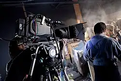 The production process generates a variety of emissions and pollutants, including greenhouse gasses, air pollutants, and chemical waste.[12] Aspects like transportation, energy use, and on-set activities contribute to these emissions, which lead to climate change and air quality deterioration.[13] The usage of electricity during filming and post-production contributes substantially to the environmental footprint of film production, a typical tentpole film production consumes enough energy to power New York Times Square for five days.[14] Film production sites are also heavily reliant on energy, water, and raw material consumption. The average production with a budget of $70 million will produce a substantial carbon footprint of 3,370 metric tons.[13] Other factors that can attribute to this emission is the process of set construction, equipment operation, and transportation.[13] Transporting crew, equipment, and cast to remote filming locations significantly increases fuel consumption by 11,478 times of an average car tank, while the air miles equate to 11 one-way trips from Earth to the moon.[14] Another example that contributes to this emission is the number of cameras being utilized, with a larger production scale usually resulting in higher carbon emissions.